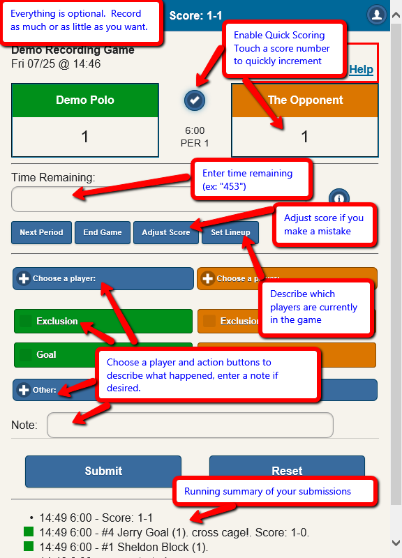 - Record as much (who, what, when, submit) or as little (increment the score) as you want