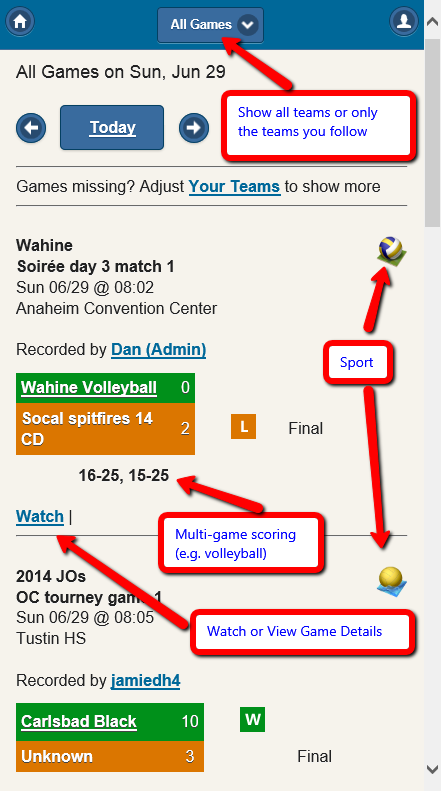 We initially used it for JO water polo, and now it supports soccer basketball and multi-game volleyball matches as well. Create some games and start scoring!